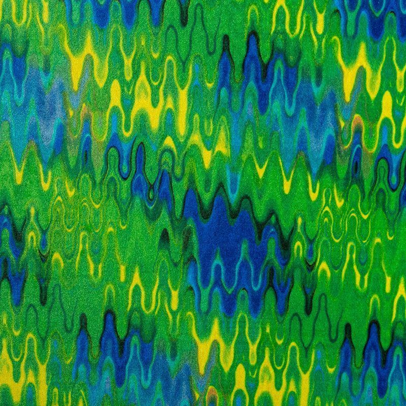 Пластичный, мягкий бархат с абстрактным дизайном в зелено-синих оттенках. Ткань очень приятна на ощупь, не мнется, хорошо тянется за счет эластана в составе и драпируется. Цвет играет отблесками и полутонами. Бархат идеально подходит для пошива вечерних платьев, юбок, костюмов, а также стильных аксессуаров.