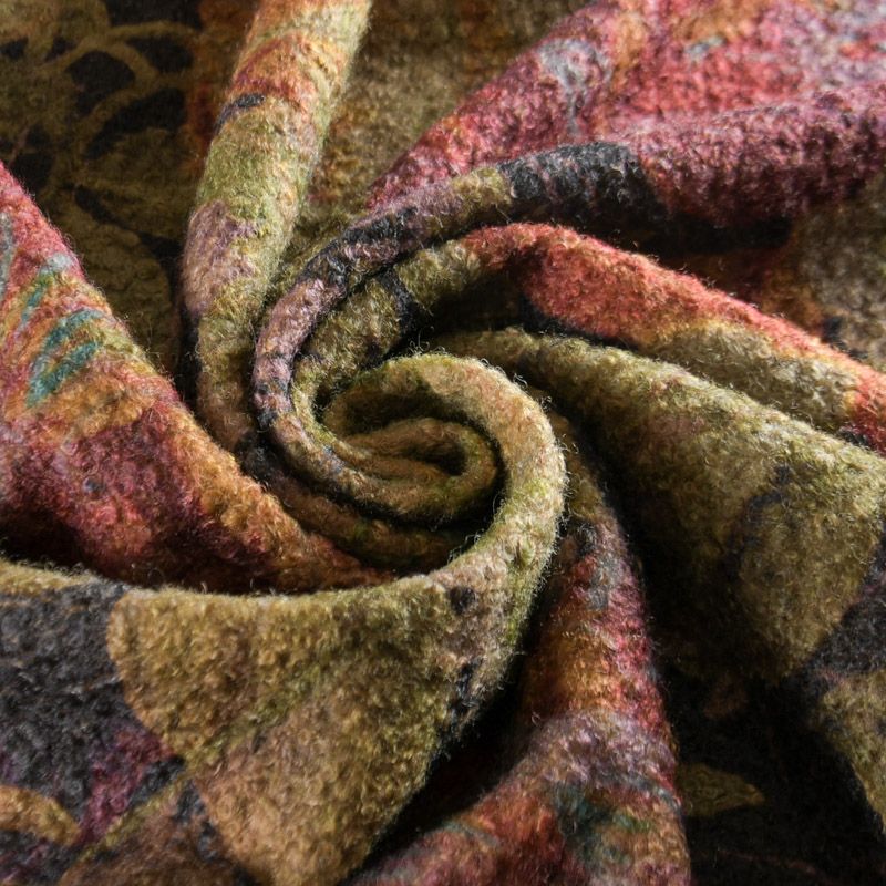Итальянская мягкая, уютная и теплая шерстяная ткань с буклированной поверхностью с крупным флористическим принтом. Полотно пластичное, нежное, шелковистое на ощупь, не мнется, отлично драпируется, устойчиво к деформации. Отлично подойдет на пальто, кардиган, пончо, бомбер, теплый костюм и другие виды верхней одежды.