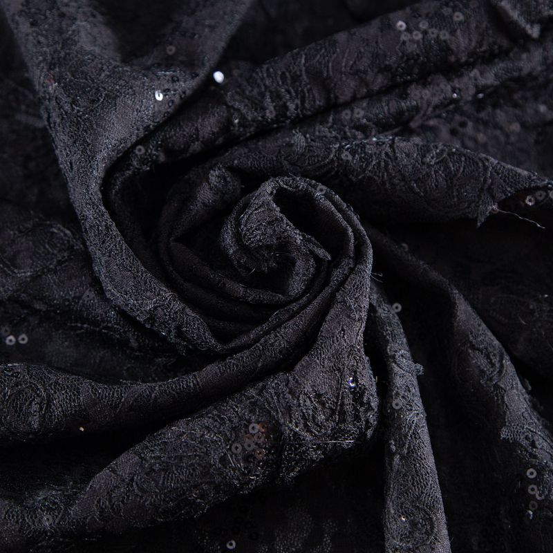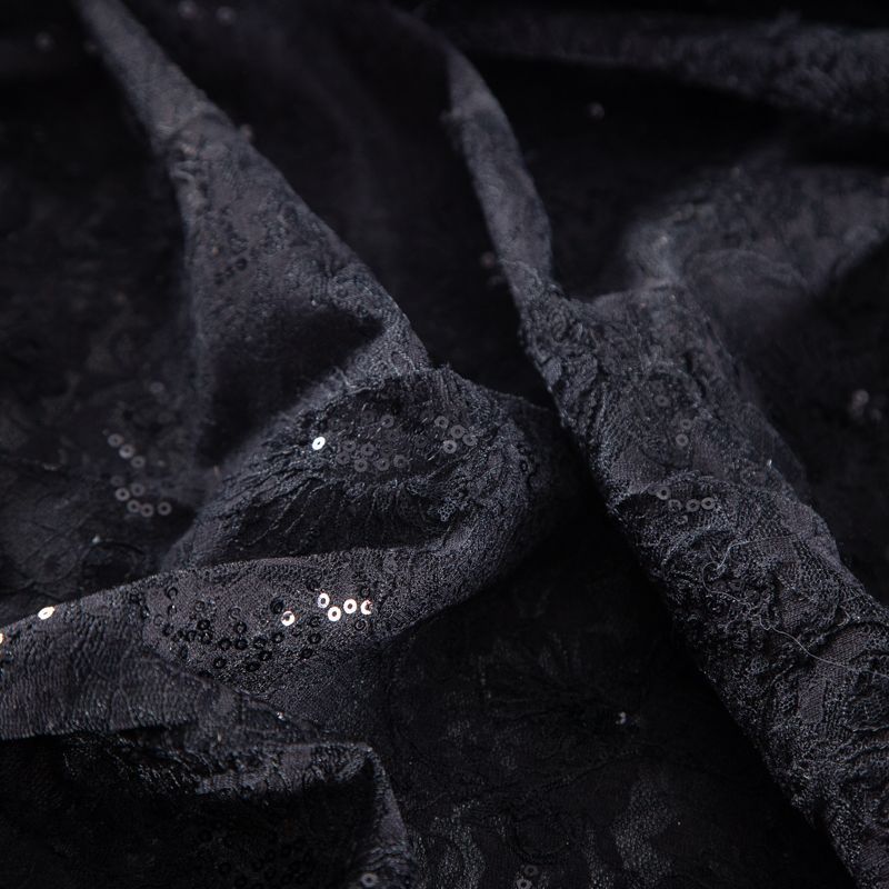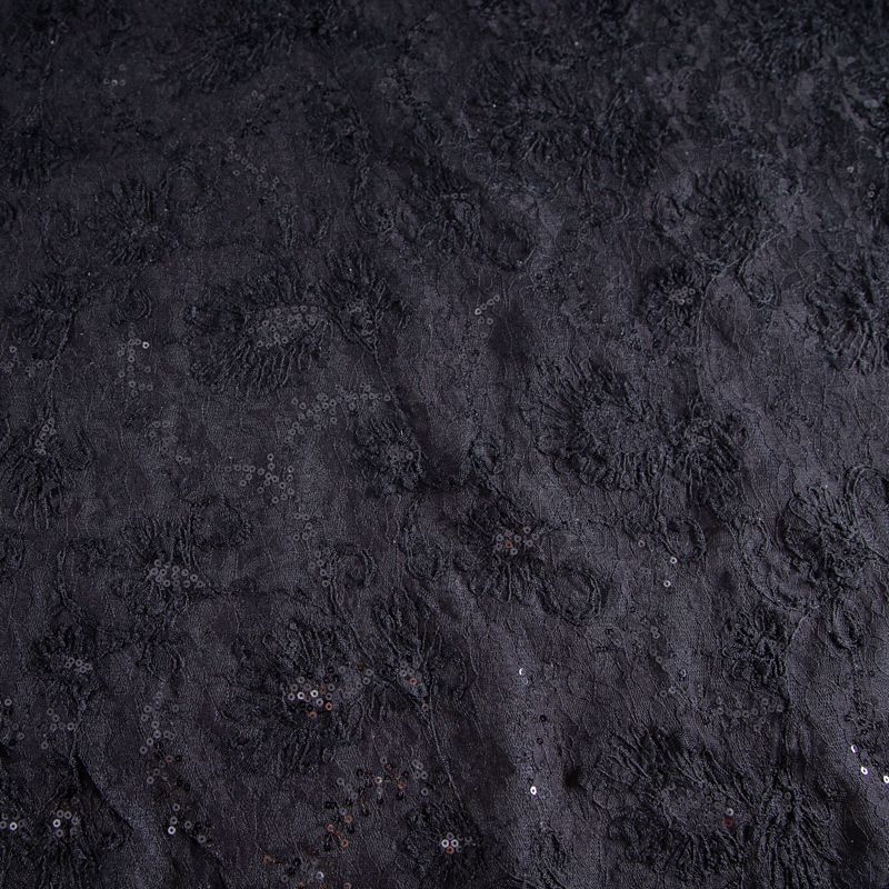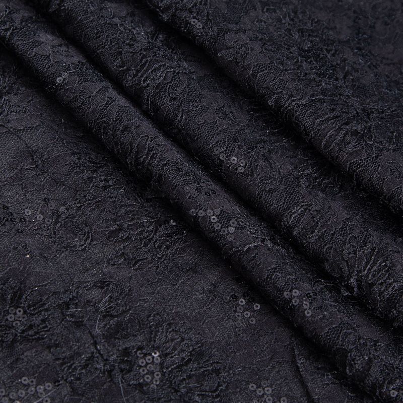 Гипюр с пайетками на вязаном трикотаже 012-20759 черный в Воркуте
