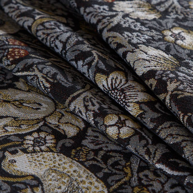Гобелен из эксклюзивной коллекции Уильяма Морриса Земляничный вор - это классический и наверно самый узнаваемый сегодня принт, он был создан в 1883 году и стал настоящим символом английского интерьера. Земляника символизируется с крепкими и чистыми чувствами и в древнем мире считалась хранительницей всего живого. Изделия с таким принтом прекрасно украсят интерьер дома. Ткань хорошо подходит для обивки мебели, изготовления домашнего текстиля, штор, декоративных подушек, покрывал, текстильных настенных панно, абажуров, а также для пошива одежды и аксессуаров.