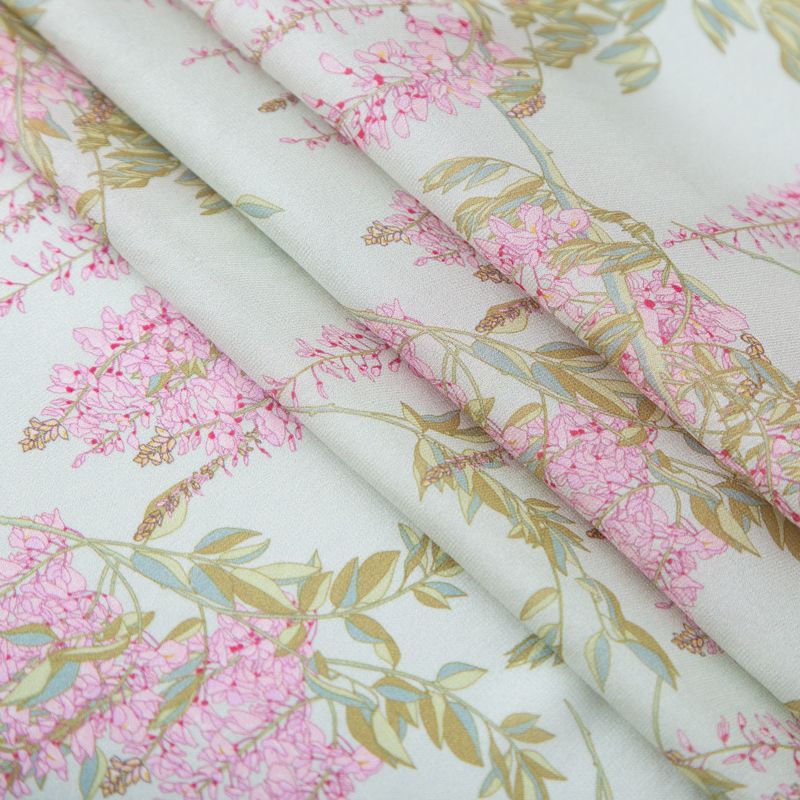 Креп-шифон шелковый 027-19850 разбеленный мятный принтованный в Воркуте