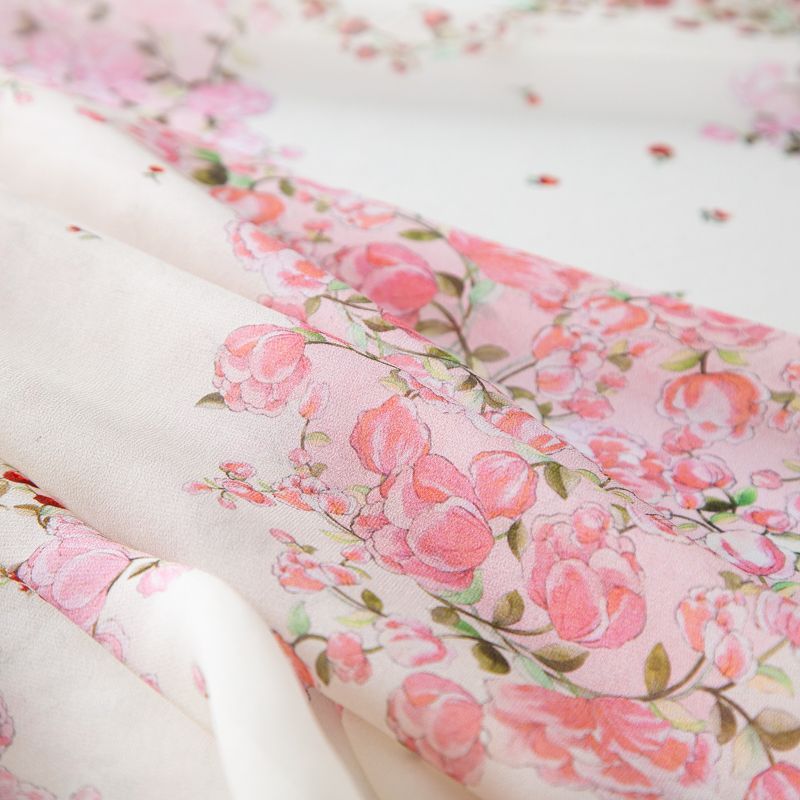 Креп-шифон шелковый 027-20215 молочный принтованный в Воркуте