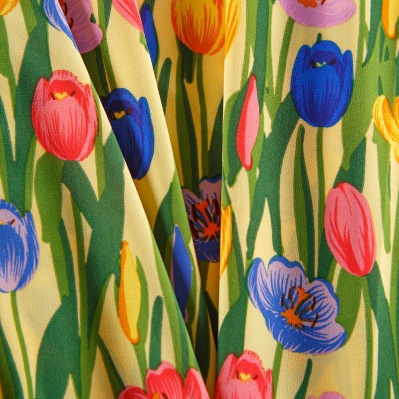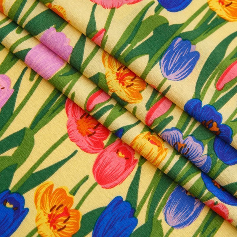 Креп-шифон стрейч 027-13092 желтый принтованный в Воркуте