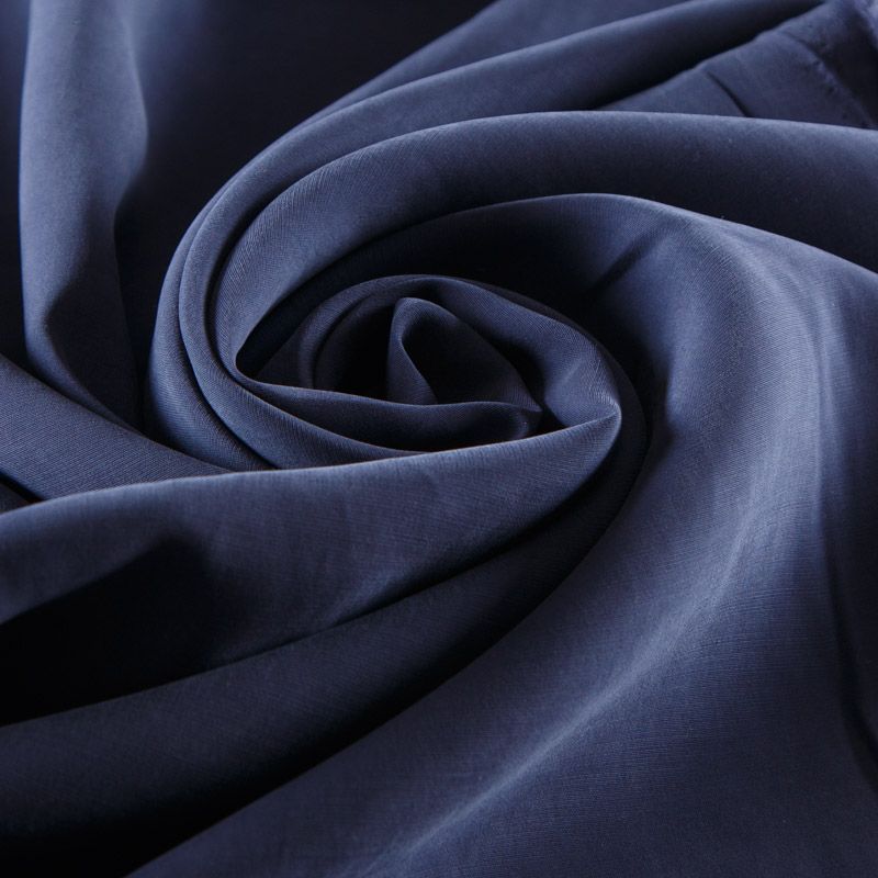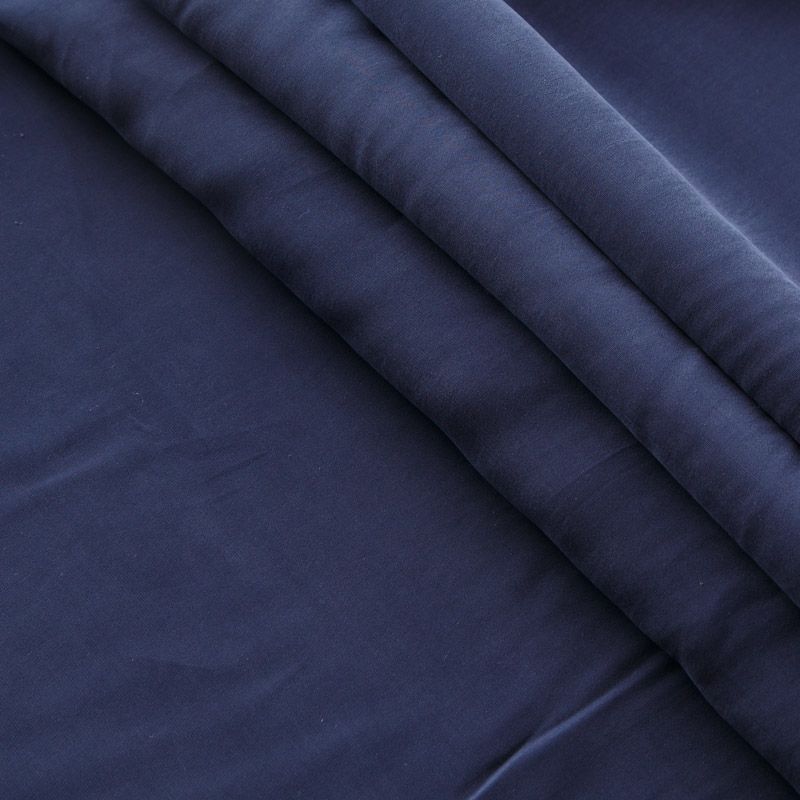 Итальянская купро плательно-костюмной плотности синего оттенка. Ткань мягкая, пластичная, струящаяся, отлично драпируется, не просвечивает. Поверхность ткани бархатистая, похожа на мокрый шелк. Идеально подойдет для платьев свободного силуэта, брюк-палацио, юбок, шорт, туник, платья-рубашки, блузы.