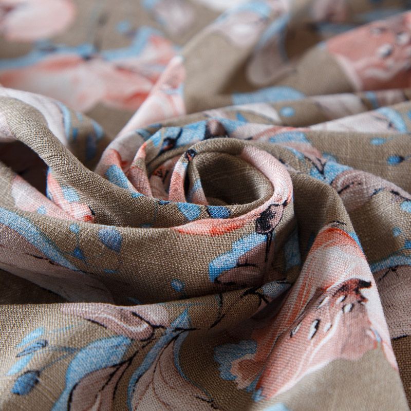 Лен-вискоза 035-13865 песочно-бежевый принтованный в Воркуте