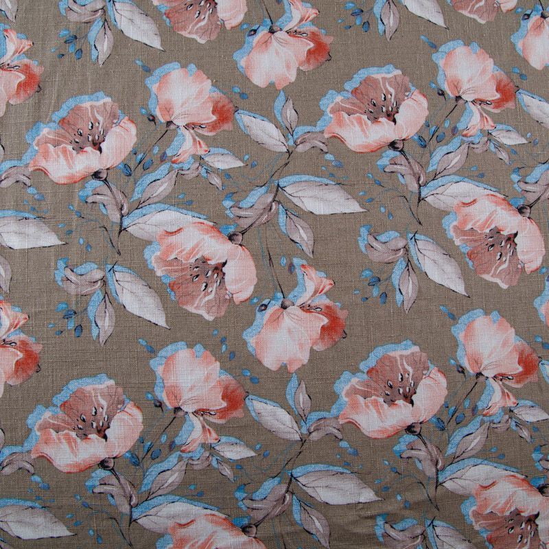 Лен-вискоза 035-13865 песочно-бежевый принтованный