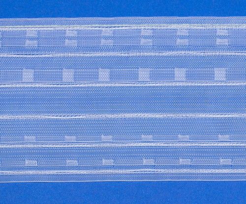 Драпировочная прозрачная лента с вафельной складкой. При использовании ленты, шторы имеют ровный верхний край и стабильные складки. Шторная лента отличается высоким качеством: ленты не дают усадки и деформации при стирке, отпаривании, самое главное - хорошо держат складки. Коэффициент сборки: 1:2.0. Раппорт 65 мм, расстояние между складками 32 мм, количество рядов кармашков - 5, количество стягивающих шнуров - 6. Макимальная глубина складки 16,5 мм.