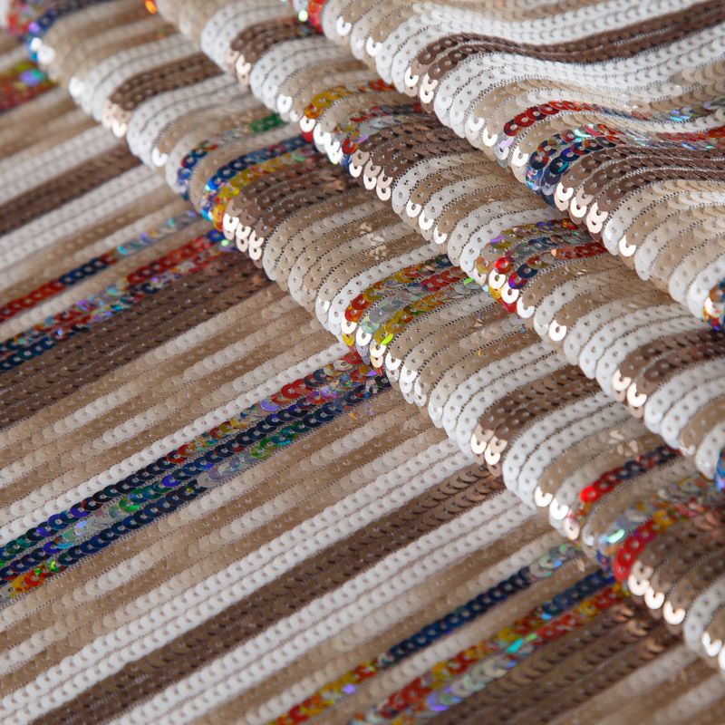 Пайетки на сетке 055-16492 бежевый/мультиколор