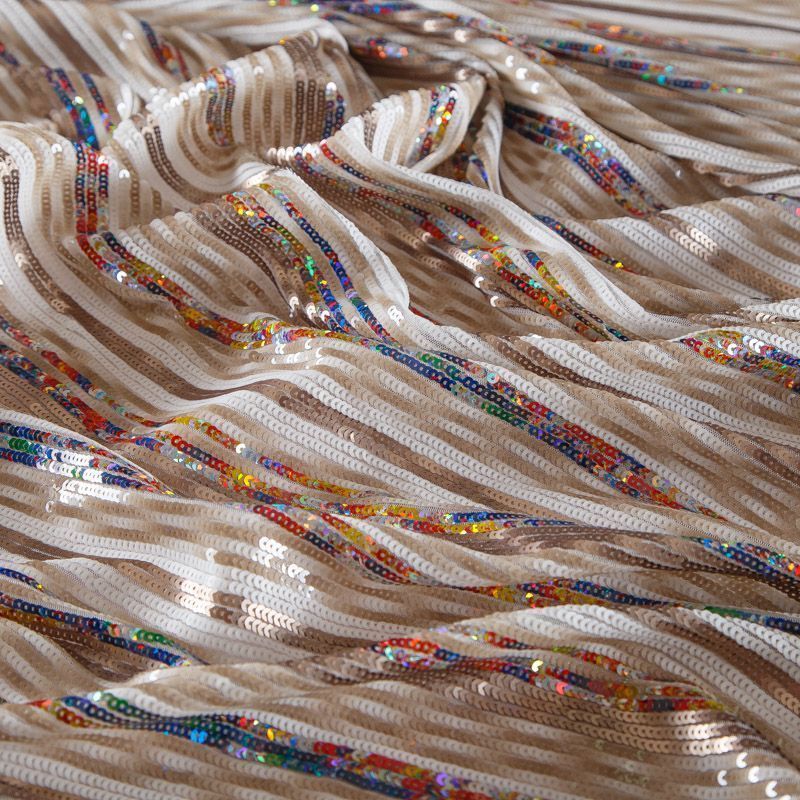 Пайетки на сетке 055-16492 бежевый/мультиколор в Воркуте