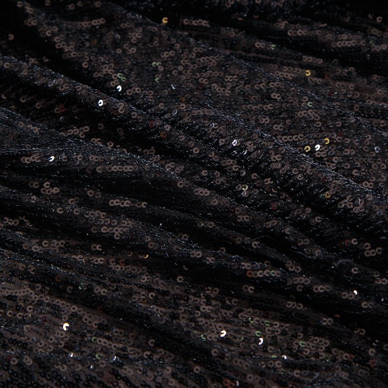 Нашитые полосками мелкие пайетки расположены от кромки до кромки. Ткань набирается на изделие объемом.