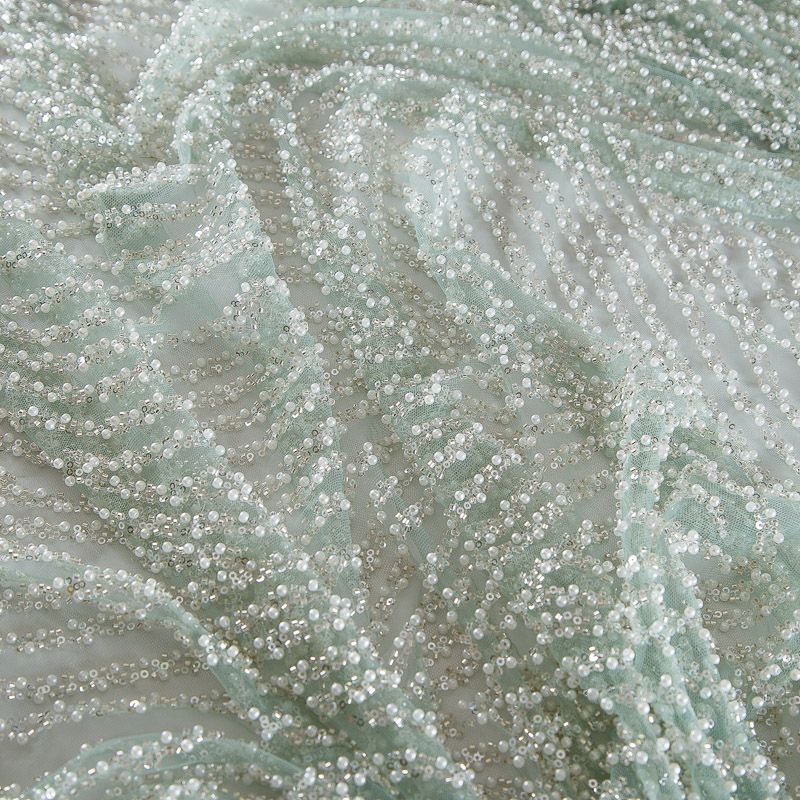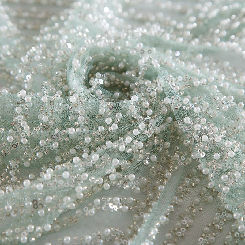 Сетка с бисером и пайетками 050-17747 мятный