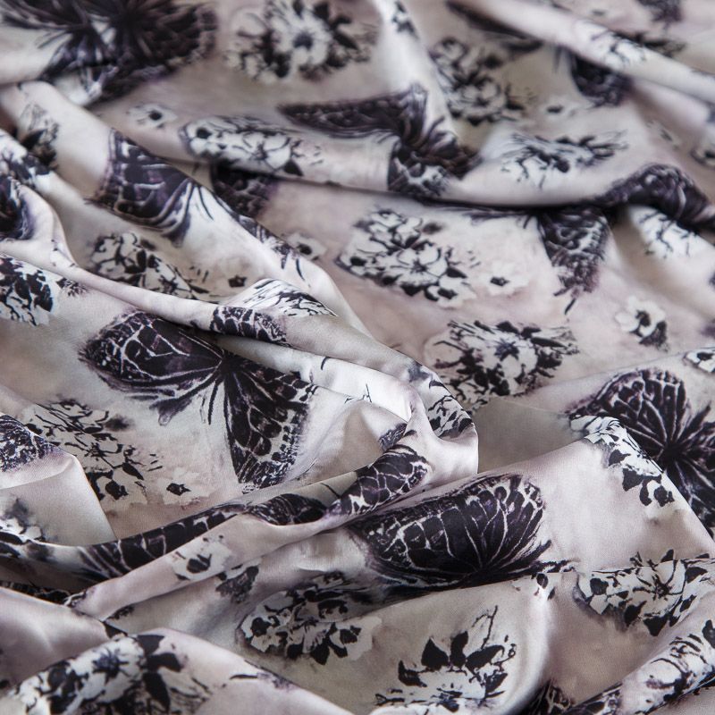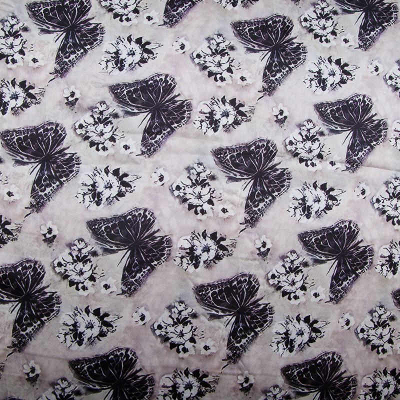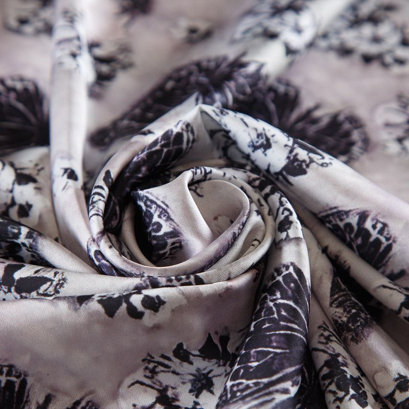 Шелк синтетический стрейч 065-17784 черый принтованный в Воркуте