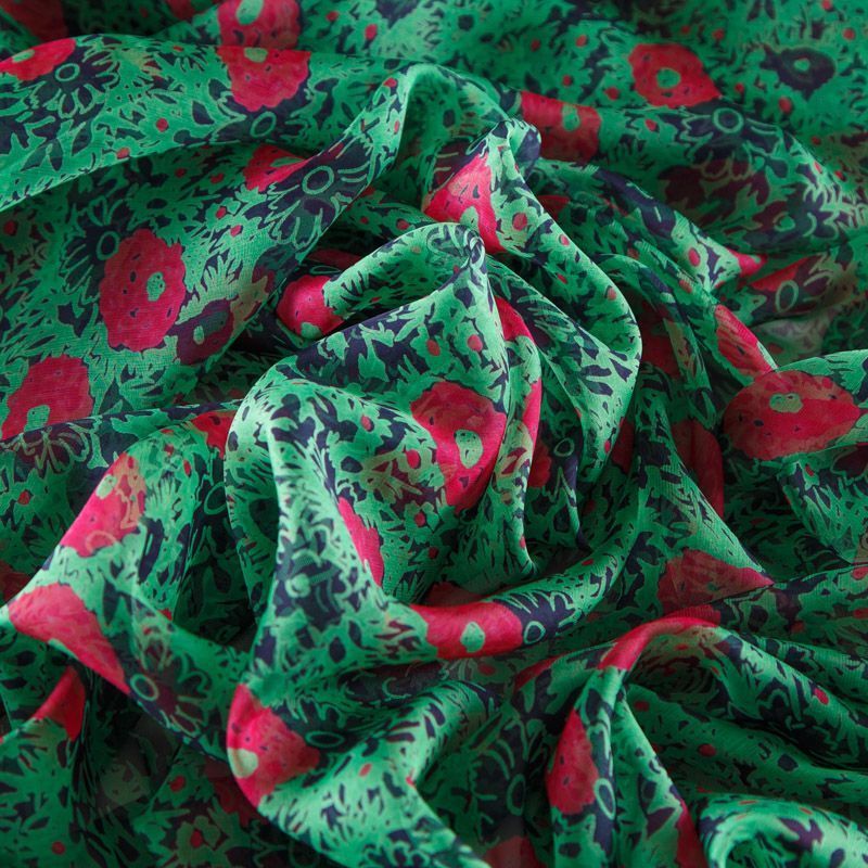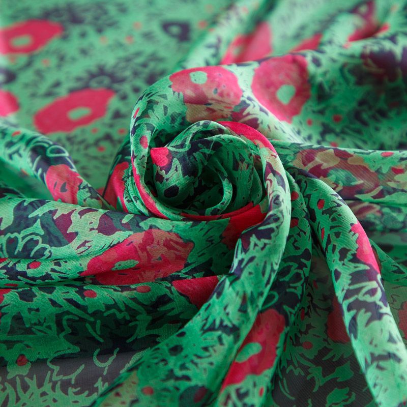 Шифон шелковый 068-12255 зеленый принтованный в Воркуте