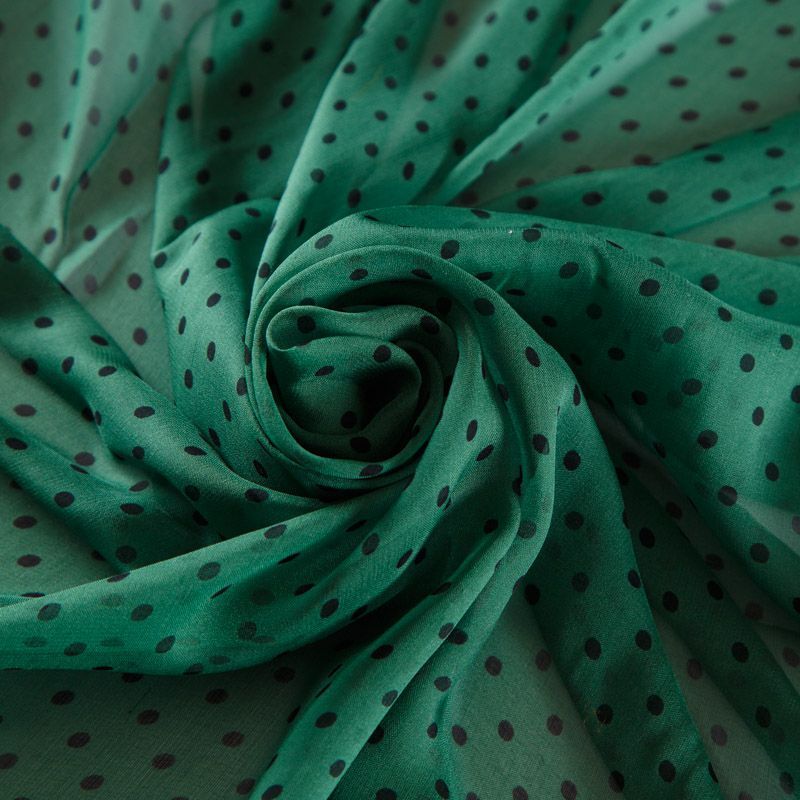 Шифон шелковый 068-12257 зеленый принтованный в Воркуте