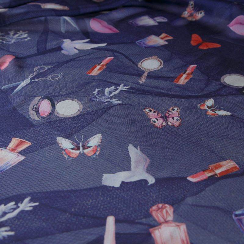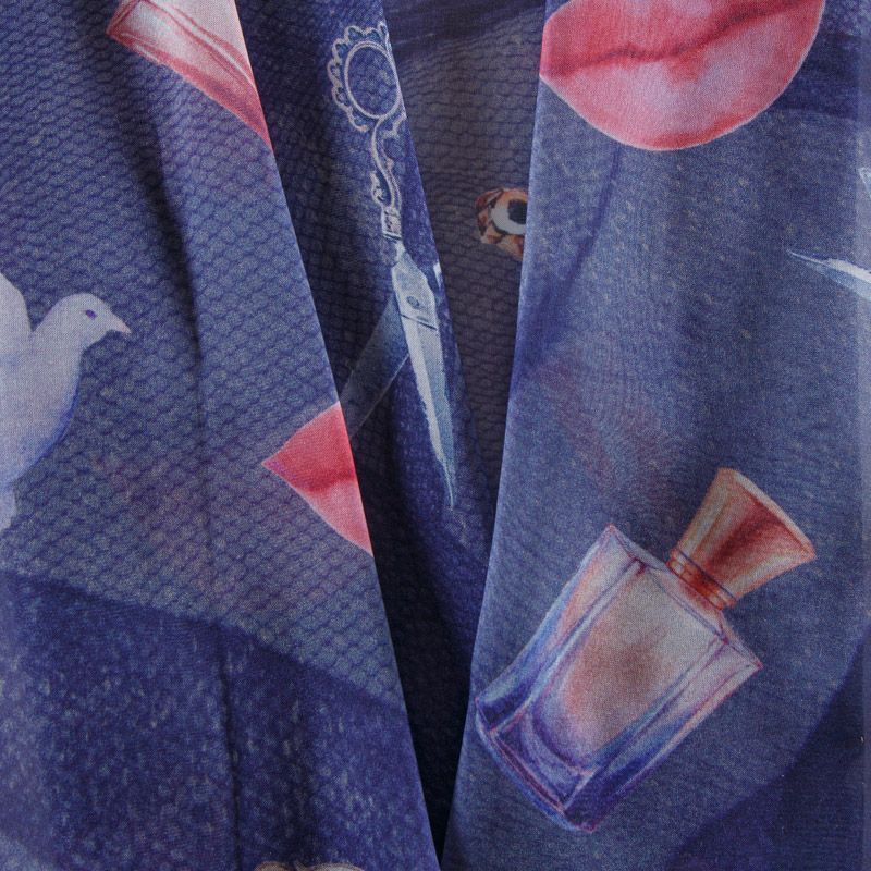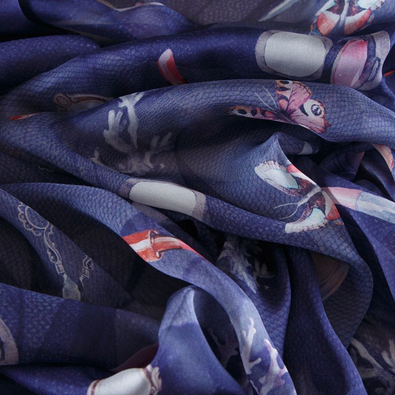 Шифон шелковый 068-12508 фиолетово-синий принтованный