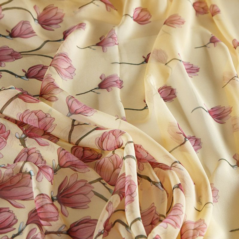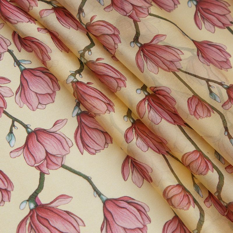 Шифон шелковый 068-17093 разбеленный желтый принтованный в Воркуте