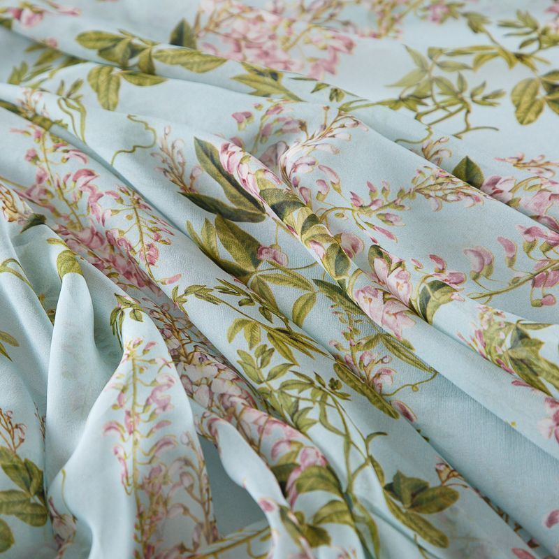 Шифон шелковый 068-19105 разбеленный голубой принтованный
