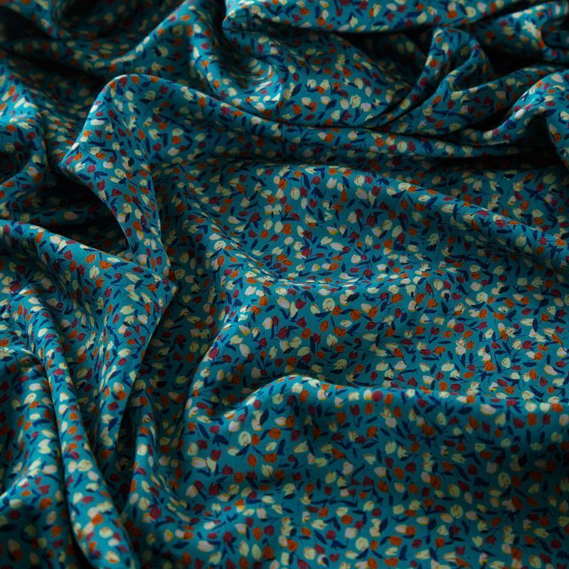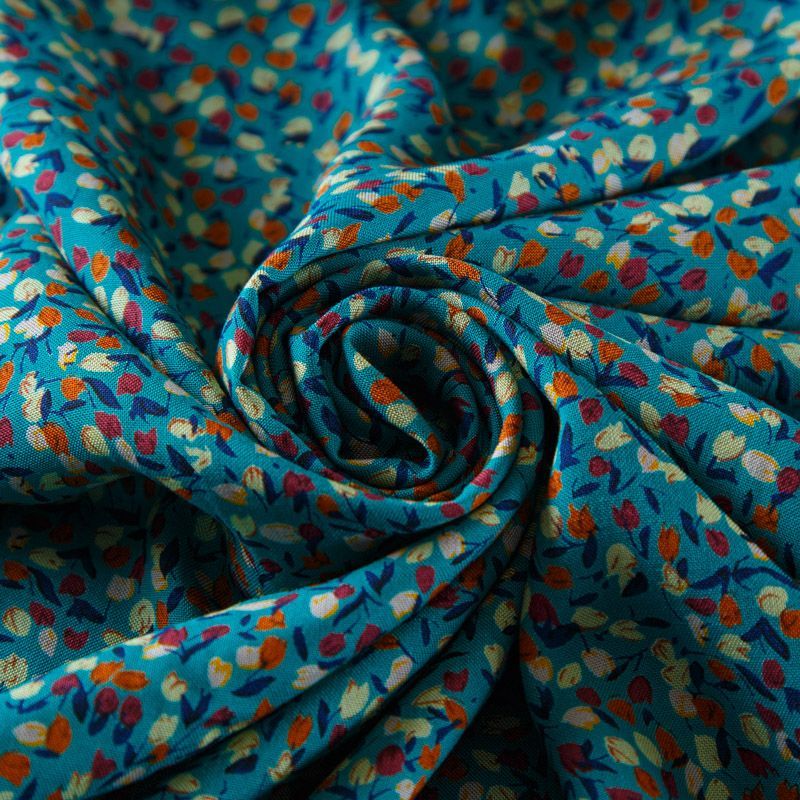Штапель 069-13566 темно-бирюзовый принтованный в Воркуте
