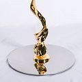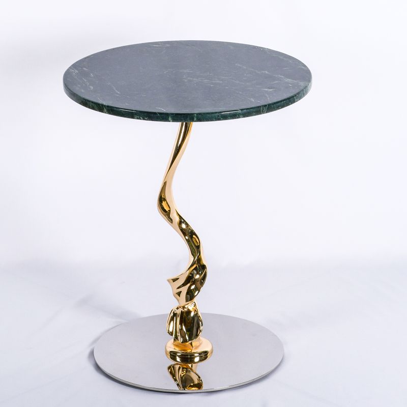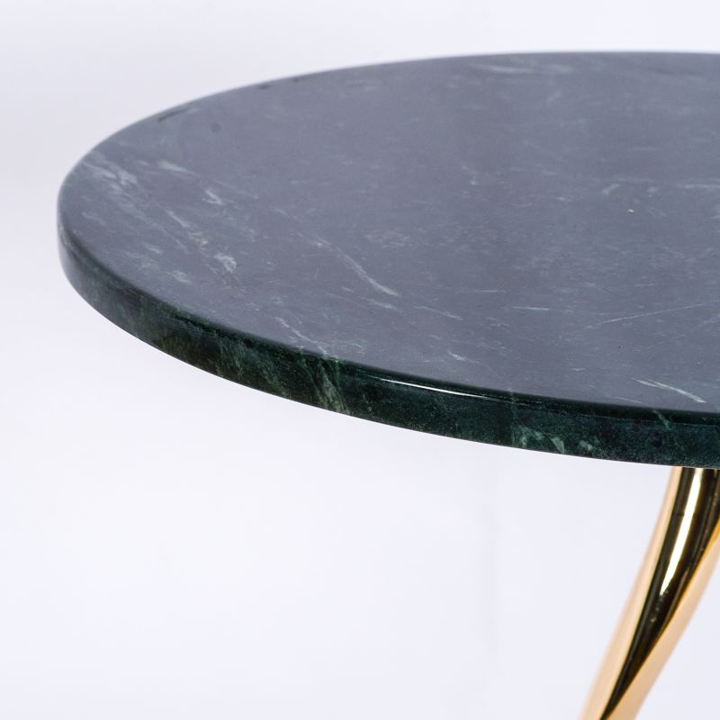 Столик кофейный/журнальный. Высота 50 см, диаметр столешницы 40 см. Подстолье выполнено из металла - золото хром, столешница - камень зеленого оттенка.