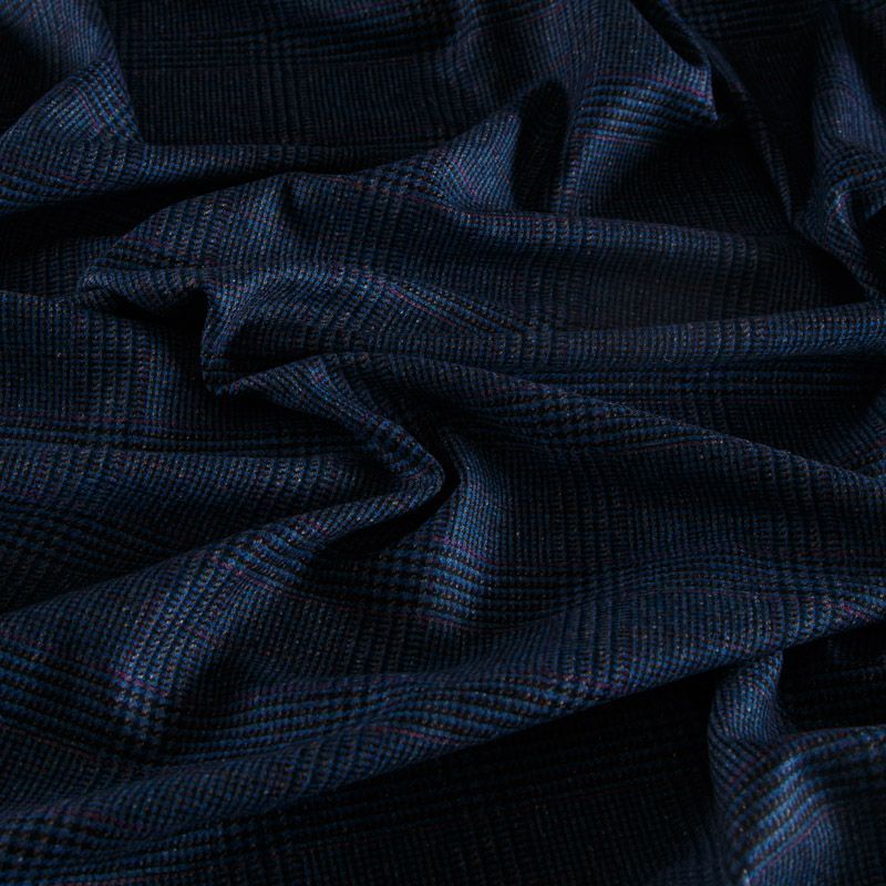 Итальянская костюмно-плательная смесовая ткань средней плотности в синем оттенке в клетку тартан. Ткань не сухая, пластичная, приятная на ощупь, почти не мнется, хорошо драпируется. Отлично подойдет на костюм, жилет, жакет, легкое пальто, юбку, брюки, платье, сарафан, шорты.