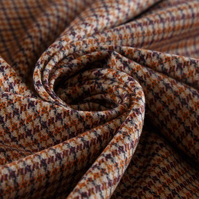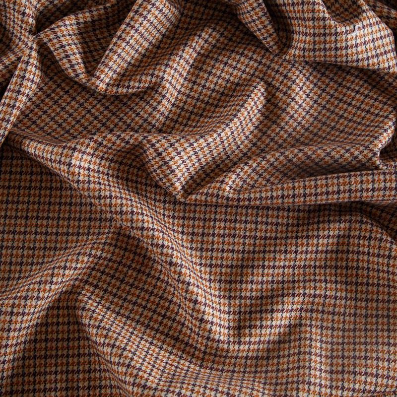 Итальянская костюмно-плательная шерсть средней плотности в бежевом оттенке в мелкую куриную лапку. Ткань не сухая, пластичная, приятная на ощупь, почти не мнется, хорошо драпируется. Отлично подойдет на костюм, жилет, жакет, легкое пальто, юбку, брюки, платье, сарафан, шорты.