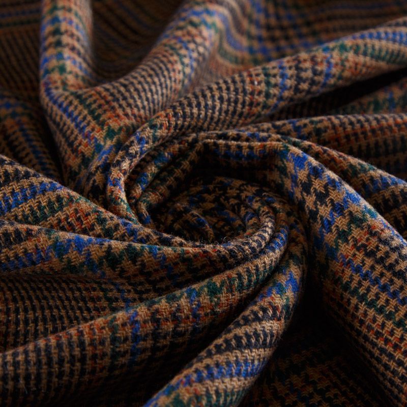 Итальянская шерстяная костюмная клетка гленчек в духе настоящей английской классики в благородном коричневом оттенке. Ткань мягкая, хорошо держит форму, не мнётся, не колется. Отлично подойдёт для жакета, платья, жилета, облегчённого пальто, брюк или юбки.