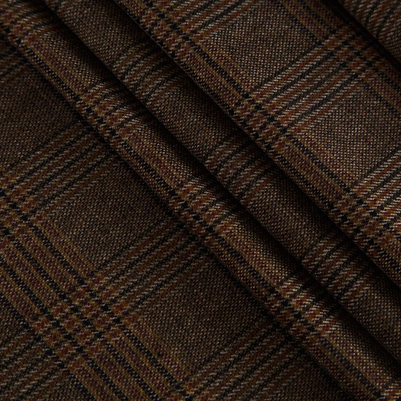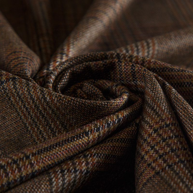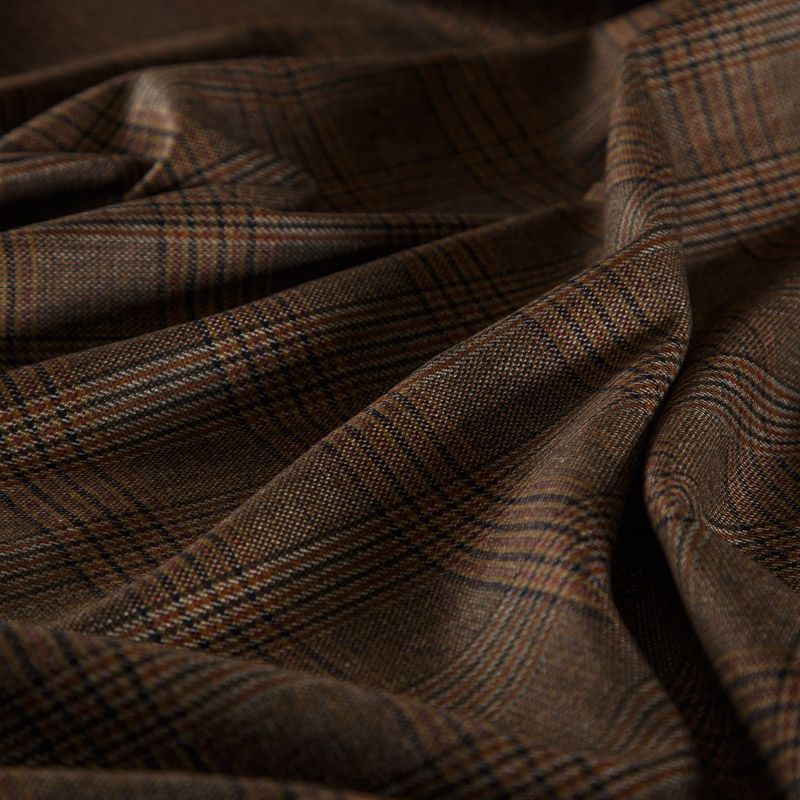 Итальянская шерстяная костюмная клетка гленчек в духе настоящей английской классики в благородном коричневом оттенке. Ткань мягкая, хорошо держит форму, не мнётся, не колется. Отлично подойдёт для жакета, платья, жилета, облегчённого пальто, брюк или юбки.