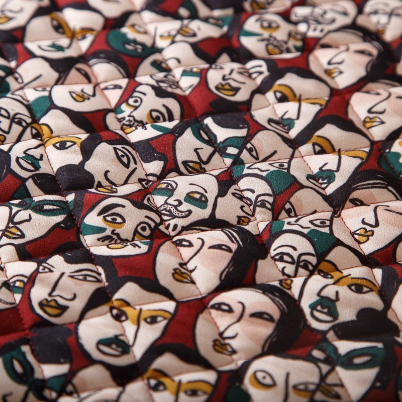 Итальянская трехслойная курточная ткань вишневого оттенка цвета с абстрактным принтом, простеганная ромбами. Нижний слой - гладкий матовый полиэстер красного цвета, средний слой - синтепон, верхний - принтованный креп-шифон. Очень мягкая и легкая, пластичная, хорошо драпируется. Прекрасно подойдет для пошива легких пальто, бомберов, парки, курток, жилетов, накидок-кейпов, объемных сумок.