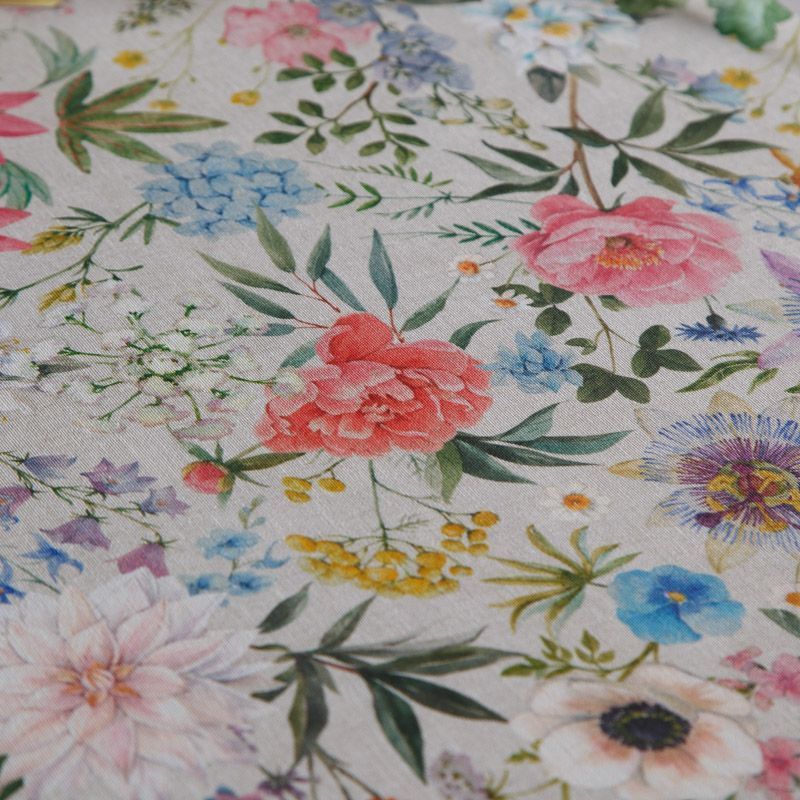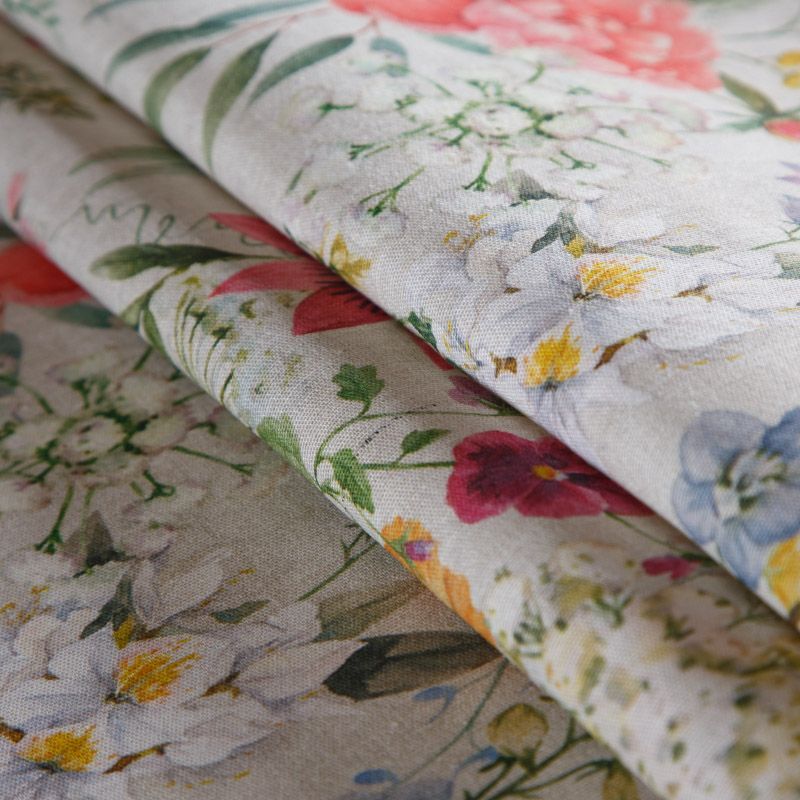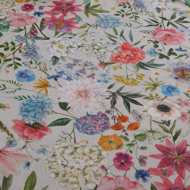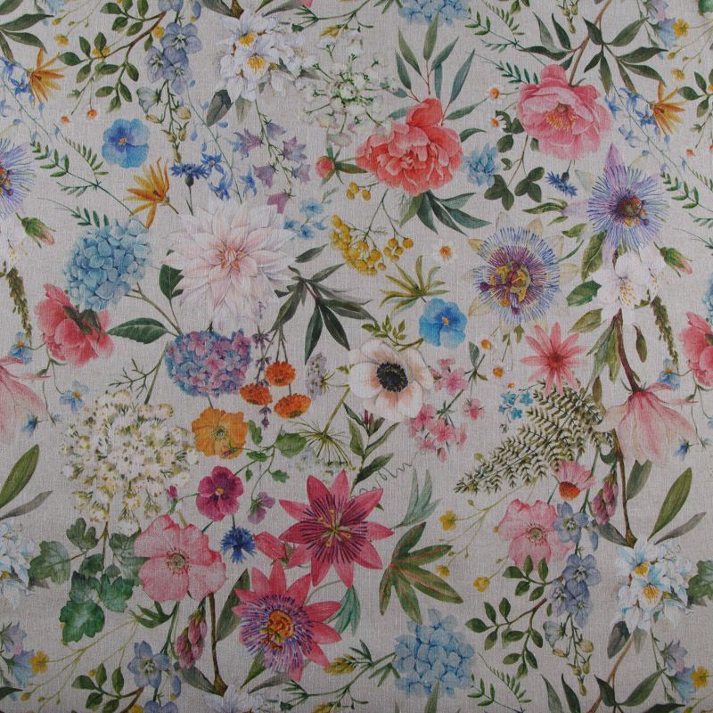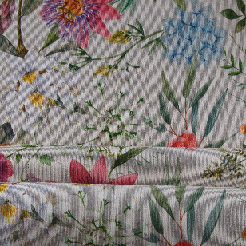 Декоративная портьерная ткань со смесовым составом и флористическим трендовым принтом от испанского производителя Visatex. Ткань средней плотности, приятная на ощупь, слегка фактурная из-за натуральных волокон. Интересный вариант для пошива штор, декоративных подушек и покрывал, изготовления текстильных элементов в кухнях-столовых, гостинных, спальнях и даже детских.