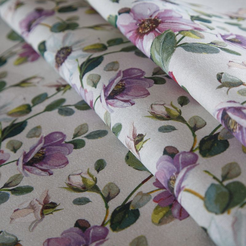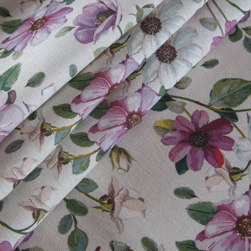 Декоративный смесовый хлопок с флористическим трендовым принтом от испанского производителя Visatex. Ткань средней плотности, приятная на ощупь, слегка фактурная из-за натуральных волокон. Интересный вариант для пошива штор, декоративных подушек и покрывал, изготовления текстильных элементов в кухнях-столовых, гостинных, спальнях и даже детских.