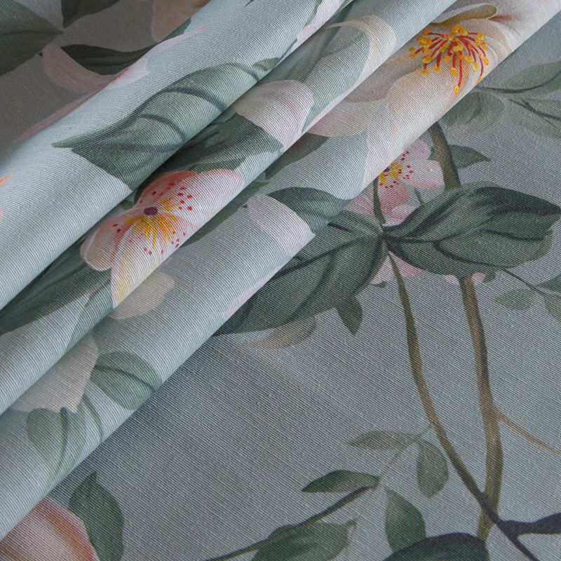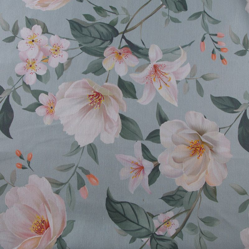 Декоративная портьерная ткань со смесовым составом и флористическим трендовым принтом от испанского производителя Visatex. Ткань средней плотности, приятная на ощупь, слегка фактурная из-за натуральных волокон. Интересный вариант для пошива штор, декоративных подушек и покрывал, изготовления текстильных элементов в кухнях-столовых, гостинных, спальнях и даже детских.