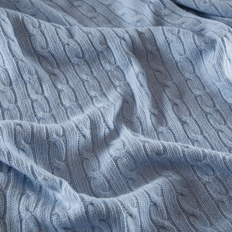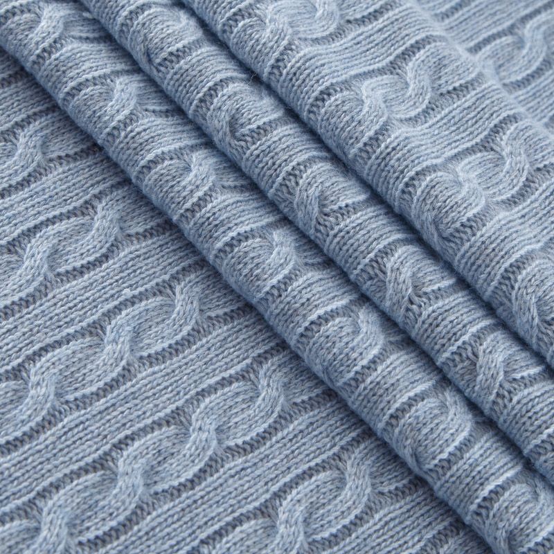 Итальянский вязаный шерстяной трикотаж с косами в нежном голубом оттенке. Трикотаж мягкий, матовый, пластичный. Отлично подойдет для пошива платья, кардигана, свитера.