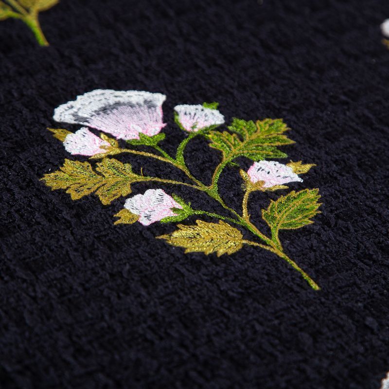 Цветочная вышивка расположена перпендикулярно кромке. Набирается на изделие объемом