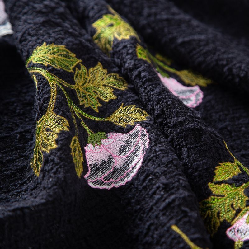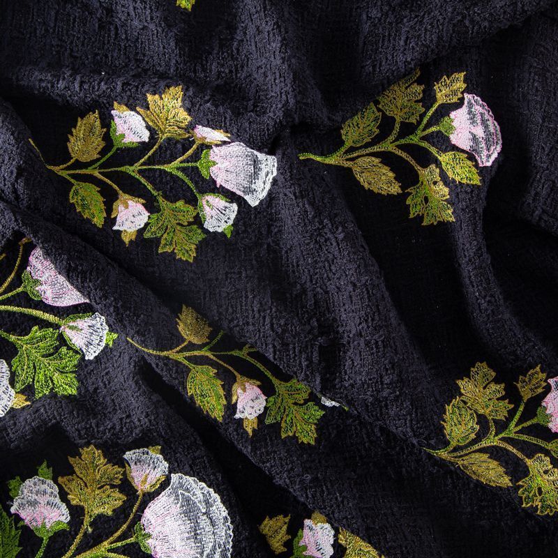 Твид с вышивкой 052-20217 черный