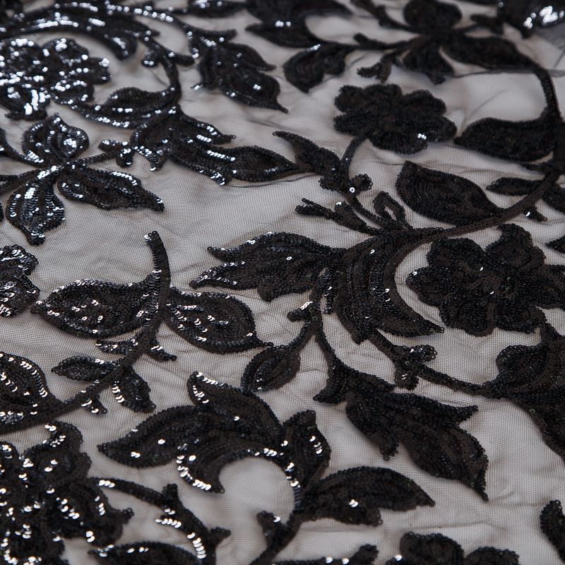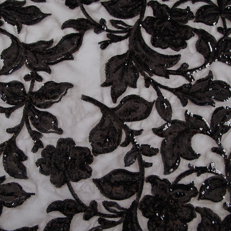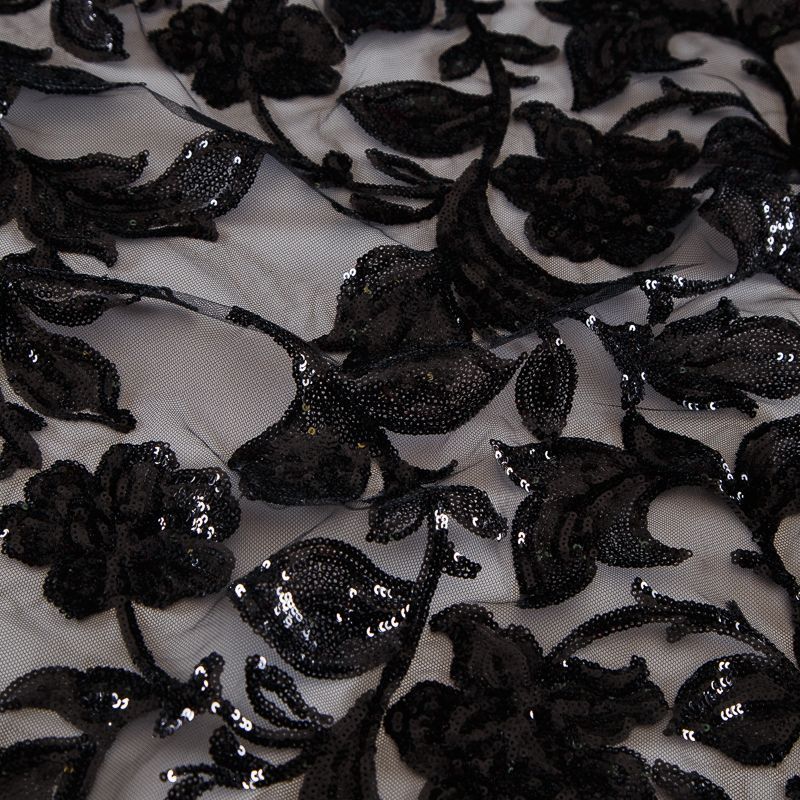 Вышивка с пайетками на сетке Armani 050-19126 черный в Воркуте