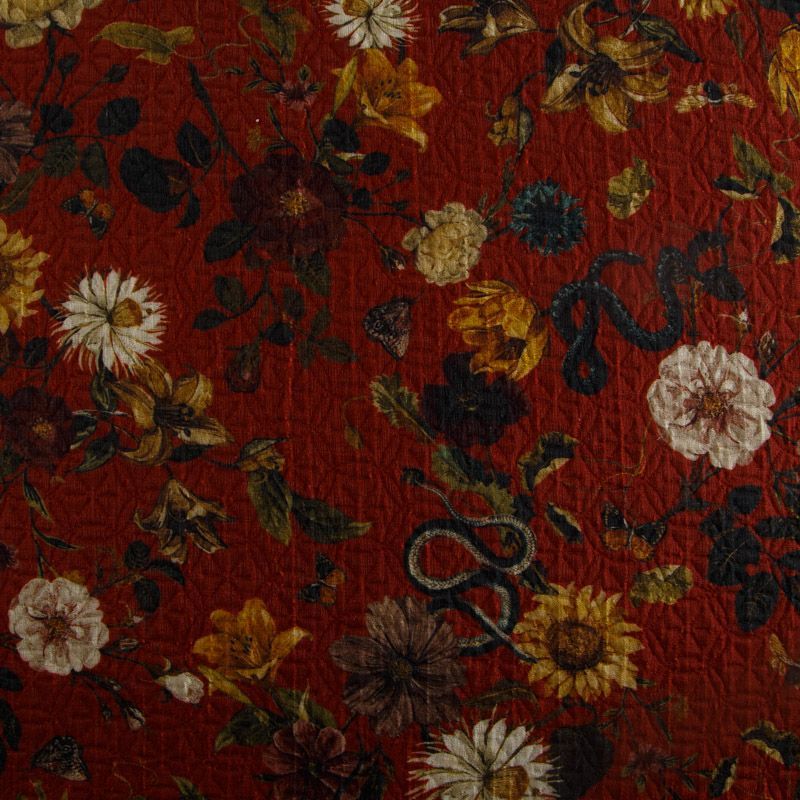 Жаккард 066-14881 красно-терракотовый принтованный